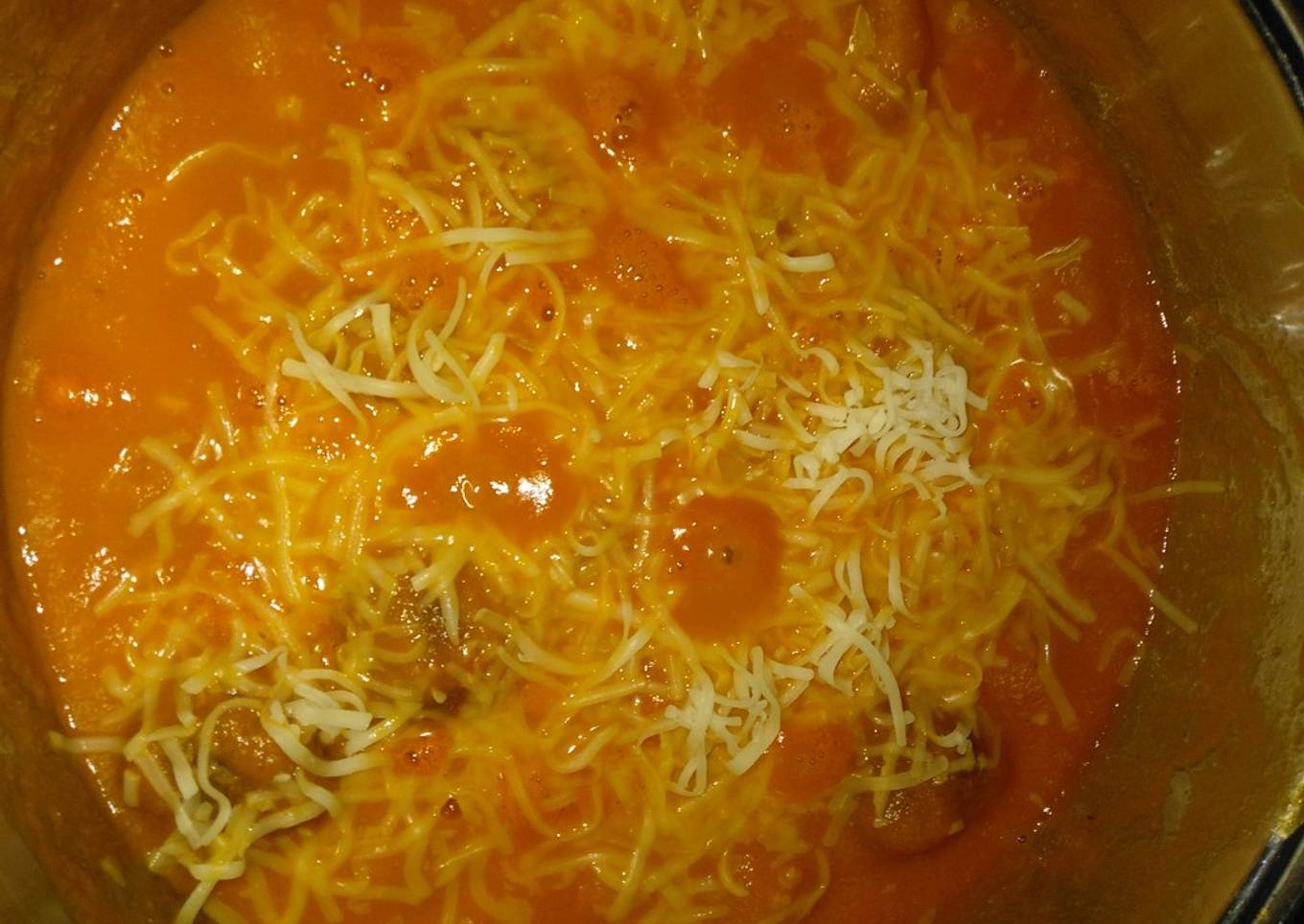 - Añadimos la mozzarella rallada y retiramos del fuego.