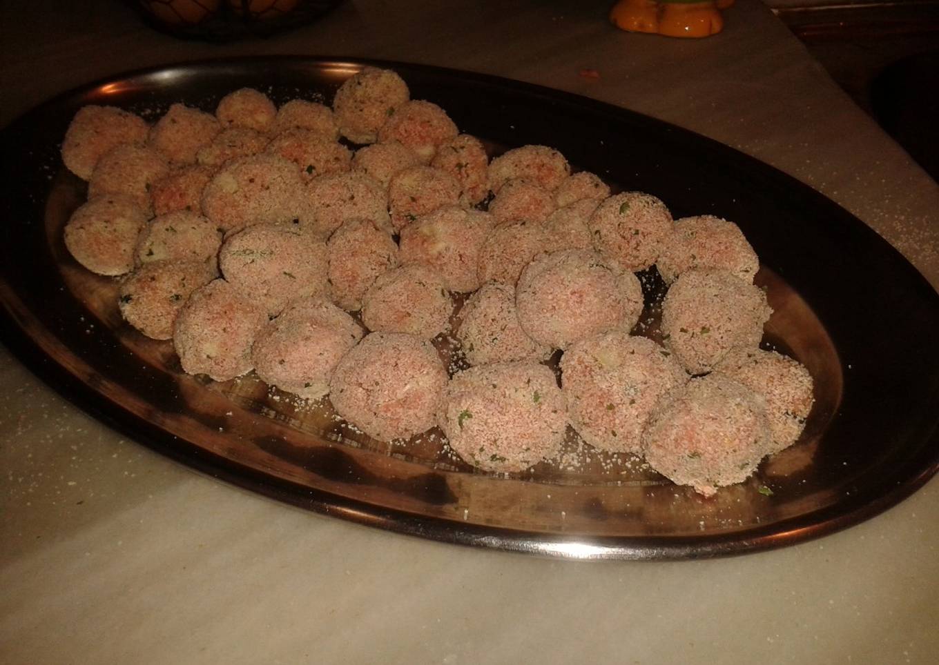 - Formar bolas redondas y rebozar con pan rallado. Ahora ya están listas para freírlas o congelarlas.
