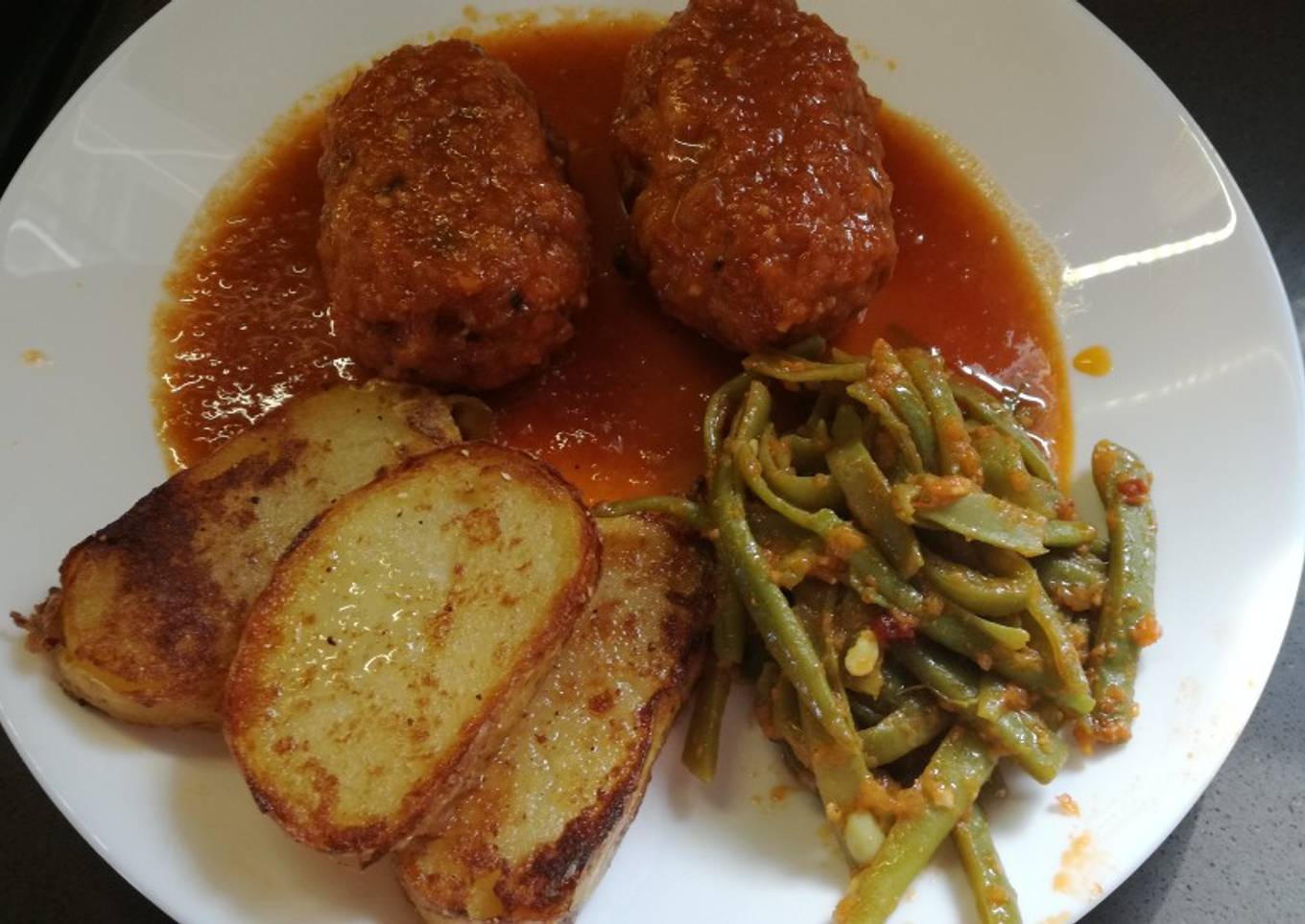 Hey everyone, I hope you are having an amazing day today. Today, I'm gonna show you how to prepare a distinctive dish, Albondigones de bonito con judías salteadas y patatas. It is one of my favorites. For mine, I am going to make it a little bit tasty. This is gonna smell and look delicious.