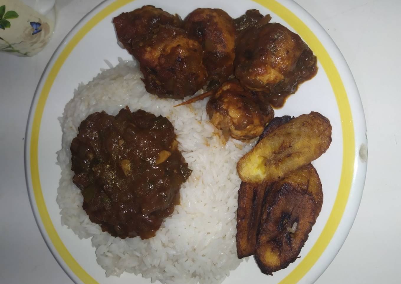Hey everyone, I hope you're having an amazing day today. Today, I'm gonna show you how to prepare a distinctive dish, Albóndigas de pollo, arroz y plátano frito. It is one of my favorites. For mine, I will make it a bit tasty. This will be really delicious.